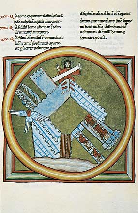 Abb.3: Hildegard von Bingen, achte Vision des dritten Buches. Eine weitere von insgesamt zehn Visionen, die als Einzelgesichte die Topographie von Vision 2 (Abb.1) detaillieren. |