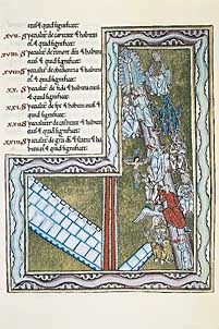 Abb.2: Hildegard von Bingen, sechste Vision des dritten Buches «Scivias». Es handelt sich um einen Teilbereich der unteren Mauerzone, deren Gesamtbild in Vision 2 (Abb. 1) wiedergegeben ist. | ![]() |